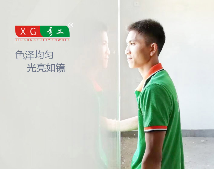 光潔如鏡,堅如磐石。耐水膩子粉拋光后光滑如玉,手劃無痕跡。色澤均勻,光亮如鏡。